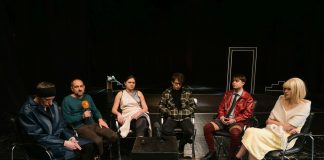 Публика и актьори се събират на сцената в новата премиера на...