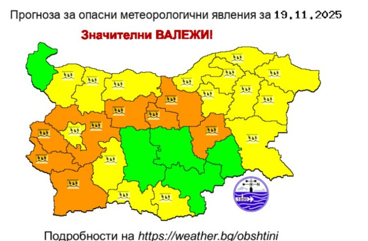 Обявиха жълт и оранжев код за интензивни валежи в половин България