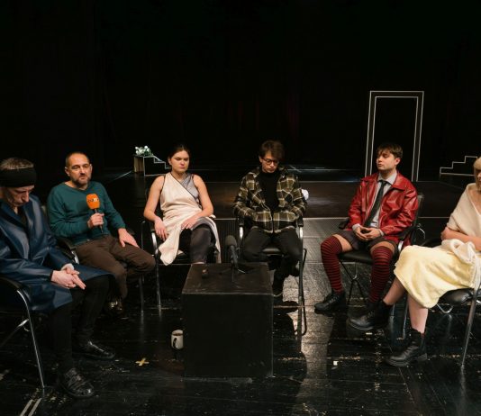 Публика и актьори се събират на сцената в новата премиера на ДТ „Сава Огнянов“