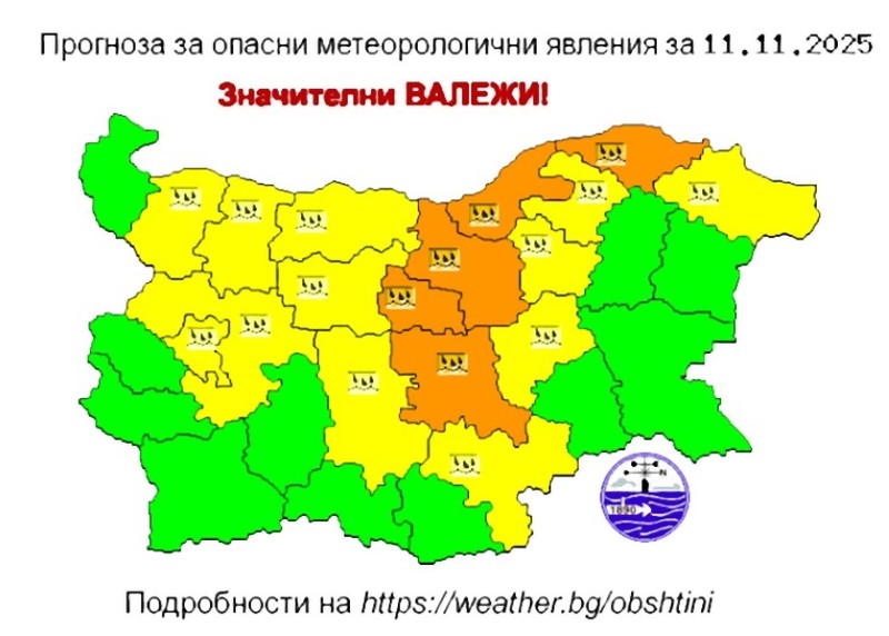 Оранжев код за обилни валежи е обявен в Русенско за утре, съобщават от Националния институт по метеорология и хидрология. Очакваните количества дъжд са около 35 – 40 л/кв. м., което е в т.нар. долен диапазон на оранжевия код. На места обаче са възможни локални наводнения. Очакванията са валежите да спрат още вечерта.