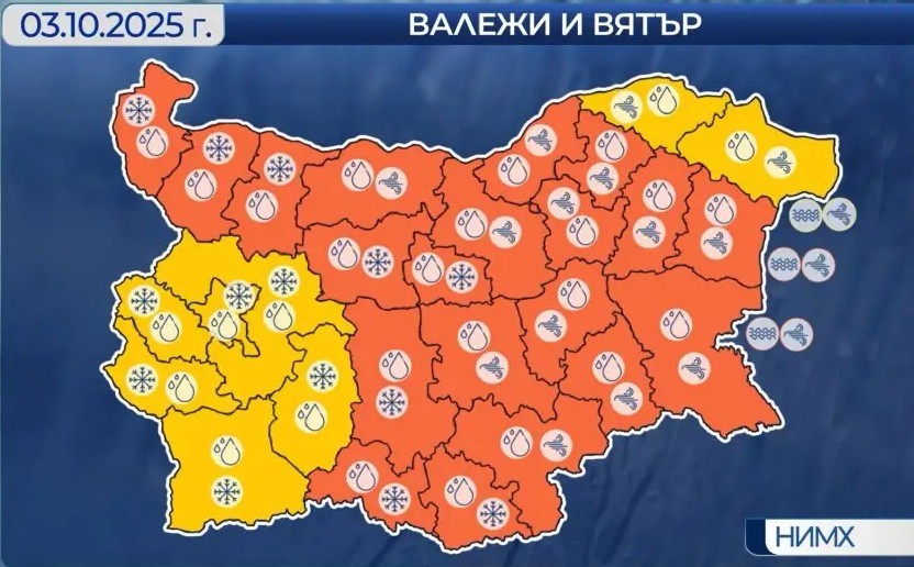 Оранжев код за опасно време в 20 области на страната, сред които и Русе, е обявен днес. В останалите 8 области на България е в сила жълт код за лошо време. Синоптиците предупреждават за предстоящи интензивни валежи от дъжд, а в планинските райони – и от сняг. На изток вятърът ще бъде изключително силен. В края на деня валежите в югозападните райони ще започнат да спират. Вятърът в източната половина от страната ще се задържи умерен и силен, а в западните райони ще се ориентира от запад-северозапад и ще бъде до умерен. Максималните температури ще са между 6° и 11°С.
