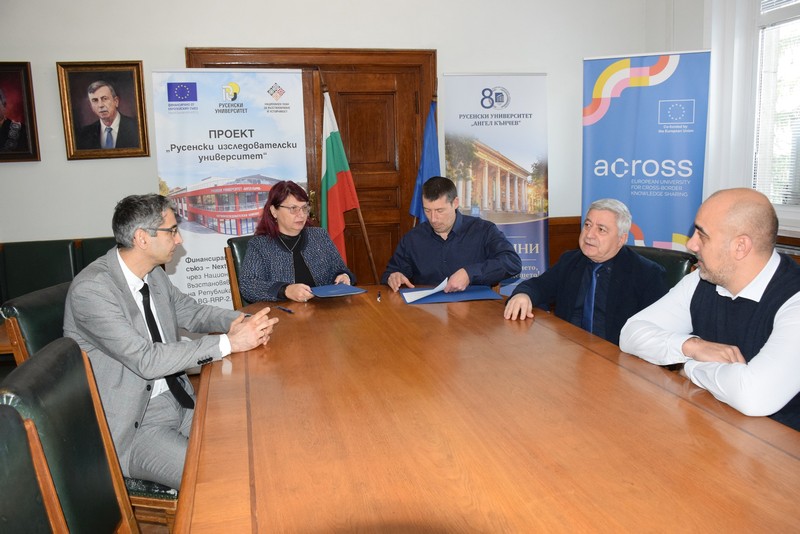 Подписите си положиха ректорът на Русенския университет доц. д-р Десислава Атанасова и гл. ас. д-р Иван Благоев, представляващ „ТинкСайбър България“.
