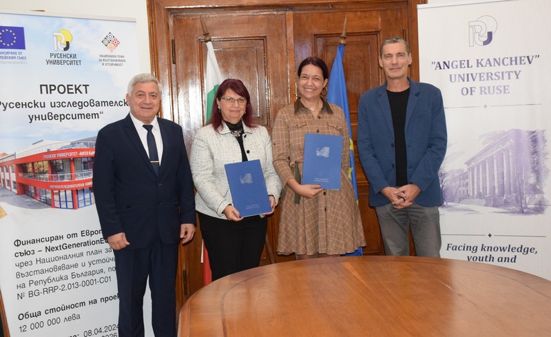 Подписите си от страна на Русенския университет положиха ректорът доц. д-р Десислава Атанасова и ръководителят на проект „Русенски изследователски университет акад. Христо Белоев – почетен ректор и председател на Общото събрание на университета.